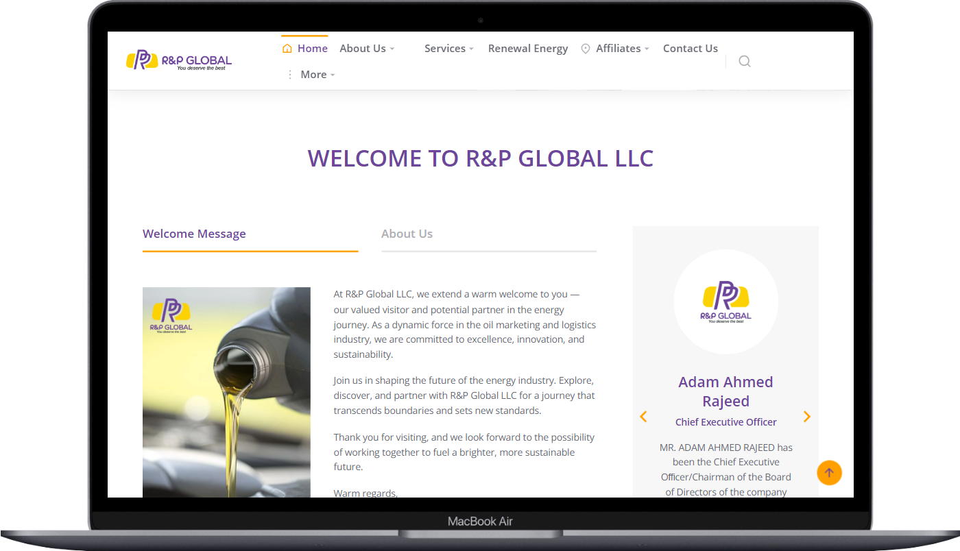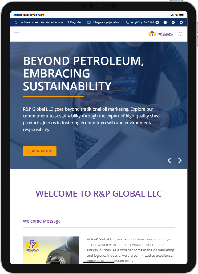 Welcome to R&P Global LLC, where innovation and excellence drive our commitment to the energy industry. As leaders in oil marketing and logistics, we invite you to explore our dynamic approach to energy solutions. Our website, crafted by Wistech Solutions, highlights our dedication to sustainability and groundbreaking advancements. Join us in shaping the future of energy and discover how R&P Global LLC can partner with you to set new industry standards and transcend boundaries.