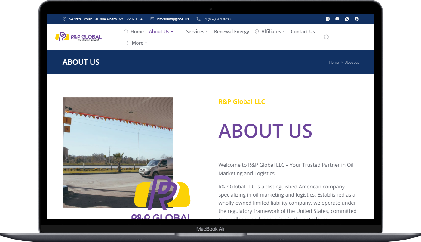 Welcome to R&P Global LLC, where innovation and excellence drive our commitment to the energy industry. As leaders in oil marketing and logistics, we invite you to explore our dynamic approach to energy solutions. Our website, crafted by Wistech Solutions, highlights our dedication to sustainability and groundbreaking advancements. Join us in shaping the future of energy and discover how R&P Global LLC can partner with you to set new industry standards and transcend boundaries.